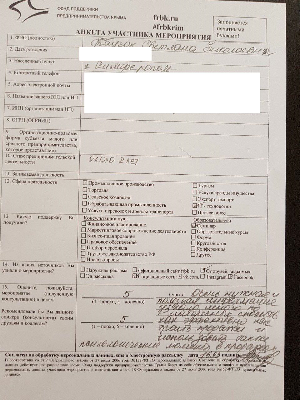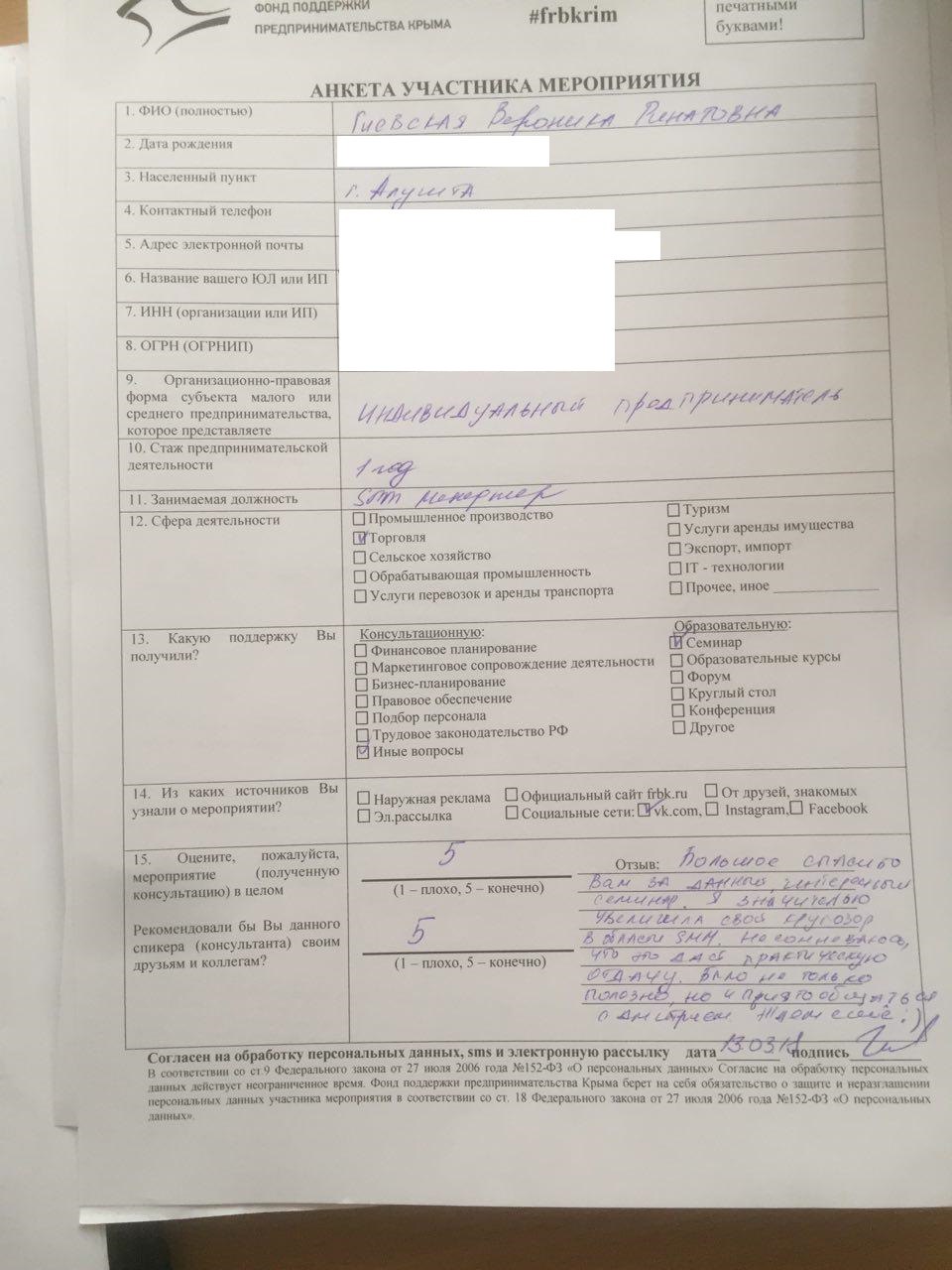 От лица Фонда — благодарим спикеров Дмитрия и Сергея за профессиональную работу и за апргрейд предпринимателей Крыма. А предпринимателям Крыма говорим спасибо, за доверие и время. Надеемся, что вы успели попробовать полученные знания и уже удалось получить первые результаты.