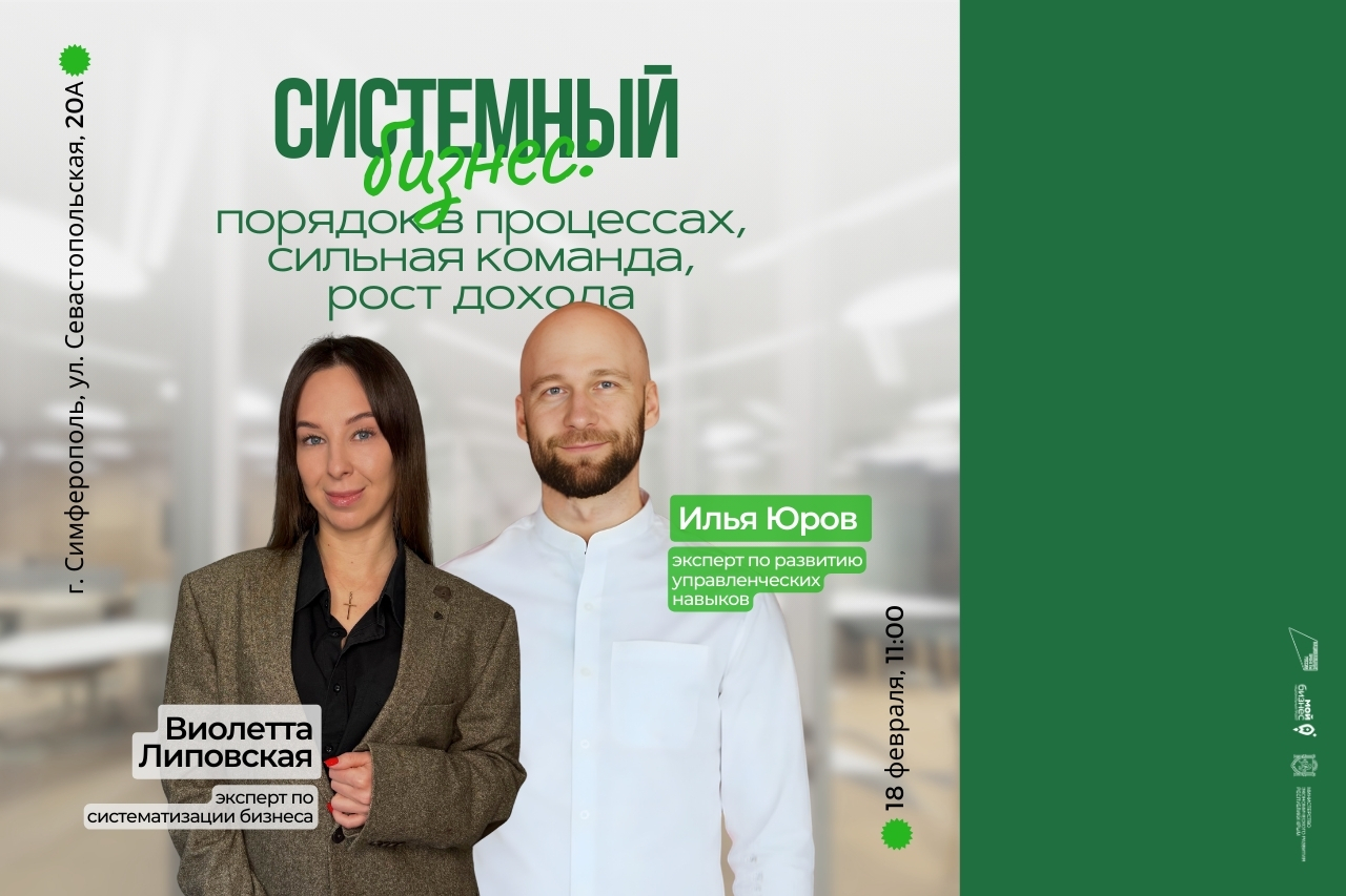 Мероприятие будет полезно для владельцев и руководителей малого и среднего бизнеса, предпринимателей в сфере услуг и тех, кто хочет выстроить систему, снизить нагрузку и масштабироваться без хаоса.